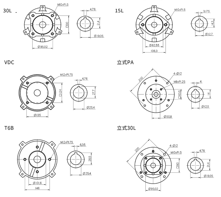 2HP 1.5KW(配VP30 40),2HP 1.5KW(配RV2R1),3HP 2.25KW)(配VP30 40),3HP 2.25KW(配HGP-2A),